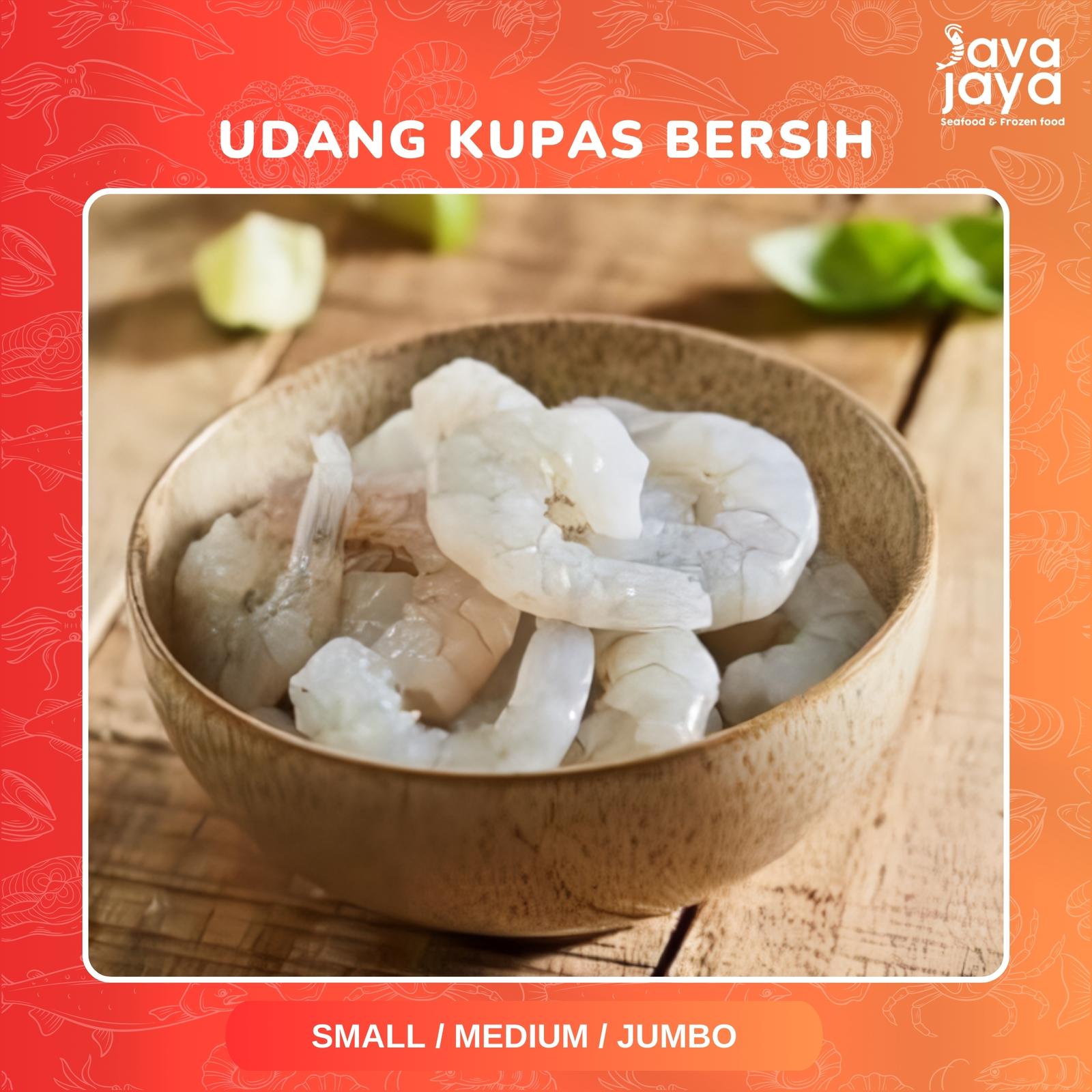 Nikmati kemudahan memasak dengan udang kupas bersih premium kami. Dengan kualitas terbaik dan sudah diproses secara higienis, Anda bisa langsung berkreasi di dapur tanpa repot. Tersedia dalam dua ukuran pilihan untuk memenuhi segala kebutuhan masak Anda.