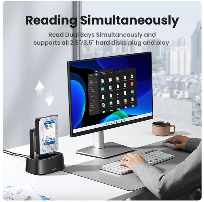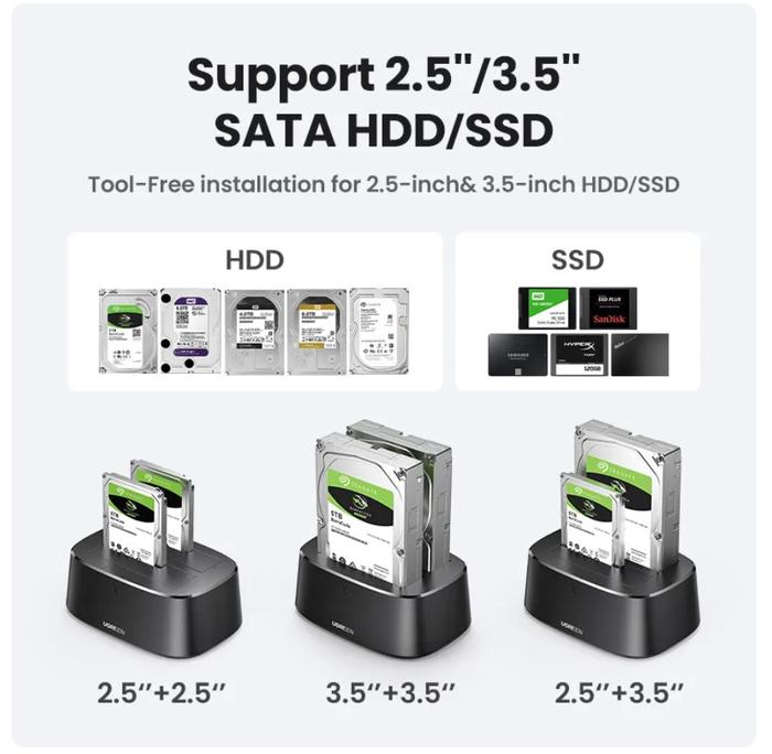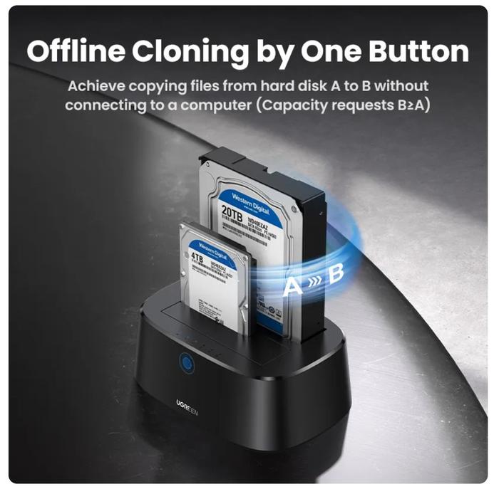 - Klon Offline: Fungsi untuk menyalin atau mengkloning seluruh data dari satu hard disk (sumber) ke hard disk lainnya (target) secara langsung melalui docking station, tanpa perlu perantara komputer.