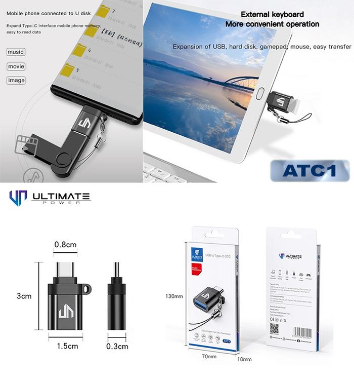 | Spesifikasi Teknis | – Merek: Ultimate Power – Model: ATC1 – Interface: Male Type-C, Female USB-A – Warna: Black |