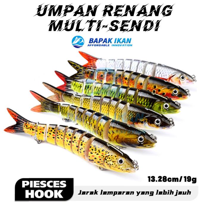 • Multi-sendi: Konstruksi umpan yang terdiri dari beberapa bagian yang terhubung oleh sendi. Desain ini memungkinkan umpan untuk bergerak secara fleksibel dan alami seperti ikan nyata saat ditarik melalui air.