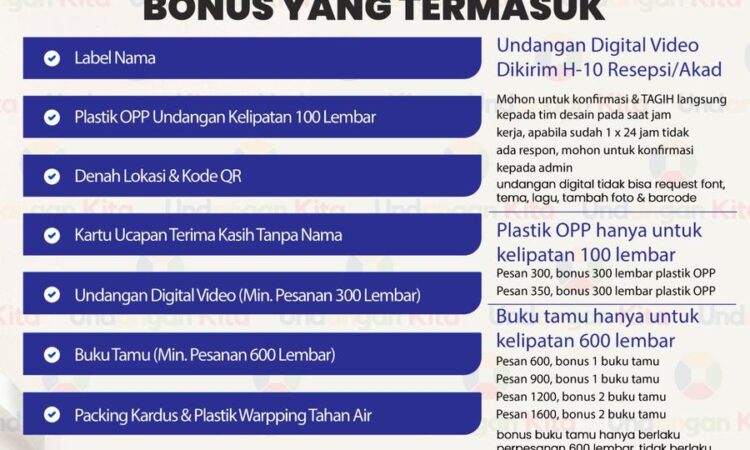 - Buku tamu: Order 650 lembar = dapat 1 buku (600 tamu).