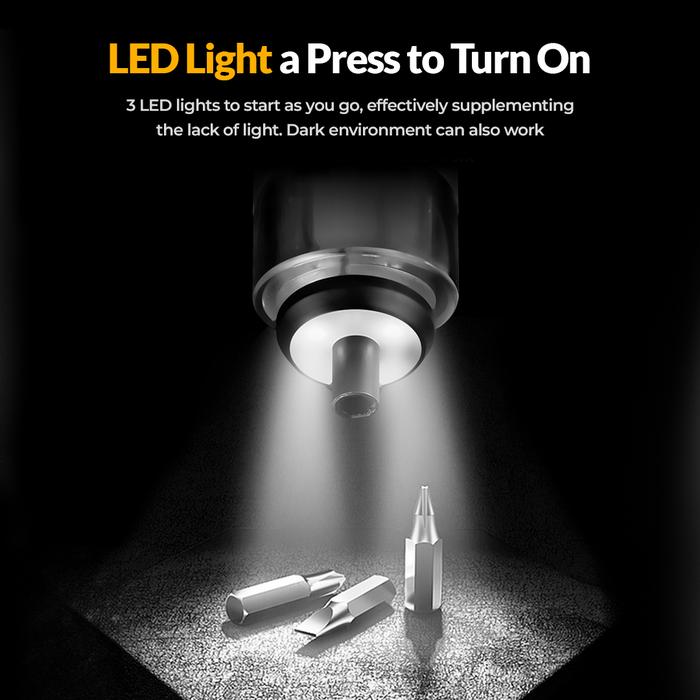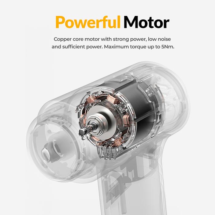 | Motor Bertenaga | Berkekuatan 3.7V dengan kecepatan hingga 200 RPM, memberikan torsi maksimal 5.0Nm untuk sekrup keras sekalipun. |