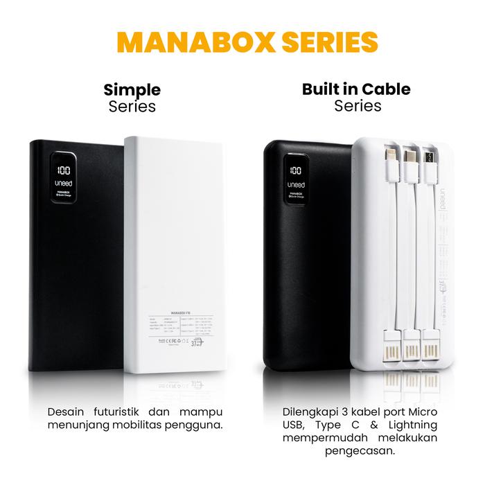 Tingkatkan mobilitas Anda dengan desain futuristik dan teknologi pengisian daya terdepan. UNEED ManaBox Series hadir dalam berbagai kapasitas untuk memenuhi semua kebutuhan perangkat Anda, dari smartphone hingga tablet. Nikmati pengisian daya super cepat yang menghemat waktu Anda, dilengkapi dengan berbagai port output dan input untuk kemudahan maksimal.