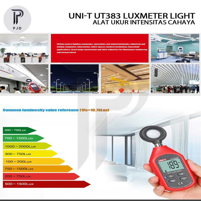 - Foot Candle (FC): Satuan imperial yang juga digunakan untuk mengukur intensitas cahaya. 1 Foot Candle kira-kira setara dengan 10.764 Lux. UT383 dapat menampilkan pengukuran dalam kedua satuan ini.