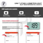 Ukur dan Pantau Tingkat Pencahayaan dengan Akurasi Tinggi untuk Kenyamanan dan Efisiensi. Luxmeter UT383 adalah solusi canggih bagi profesional dan pembuat hobi untuk memastikan kondisi pencahayaan yang optimal di berbagai setting. Alat ini sangat penting untuk industri, perkantoran, sekolah, studio fotografi, dan pencahayaan rumah, membantu mencegah kelelahan mata, menghemat energi, dan menciptakan lingkungan visual yang ideal.