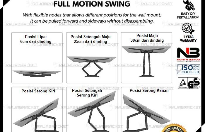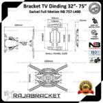 - Swivel: Kemampuan bracket memutar TV horizontal (±80°–90°).