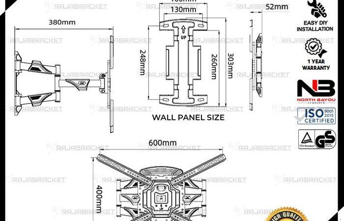 | Varian | Ukuran TV (Inch) | Beban Maksimal | Jumlah Lengan | Jarak dari Dinding | VESA Support (mm) |