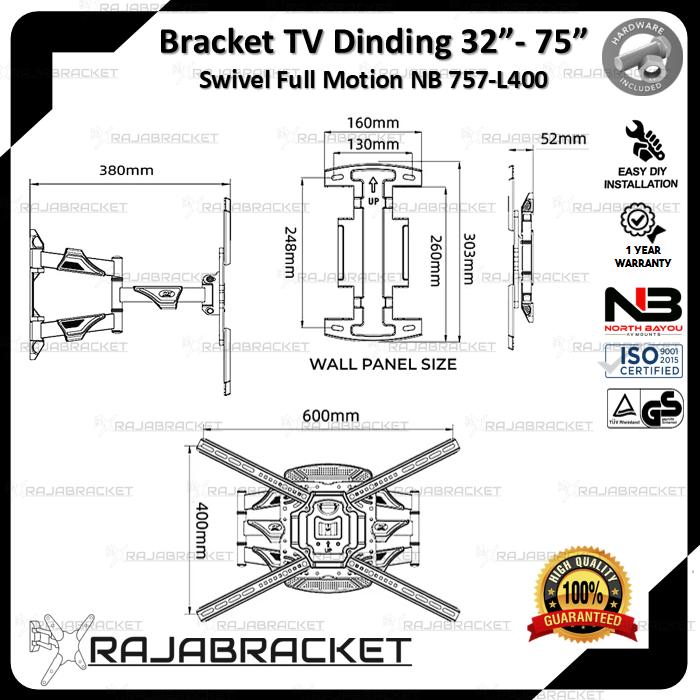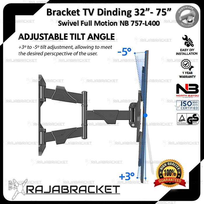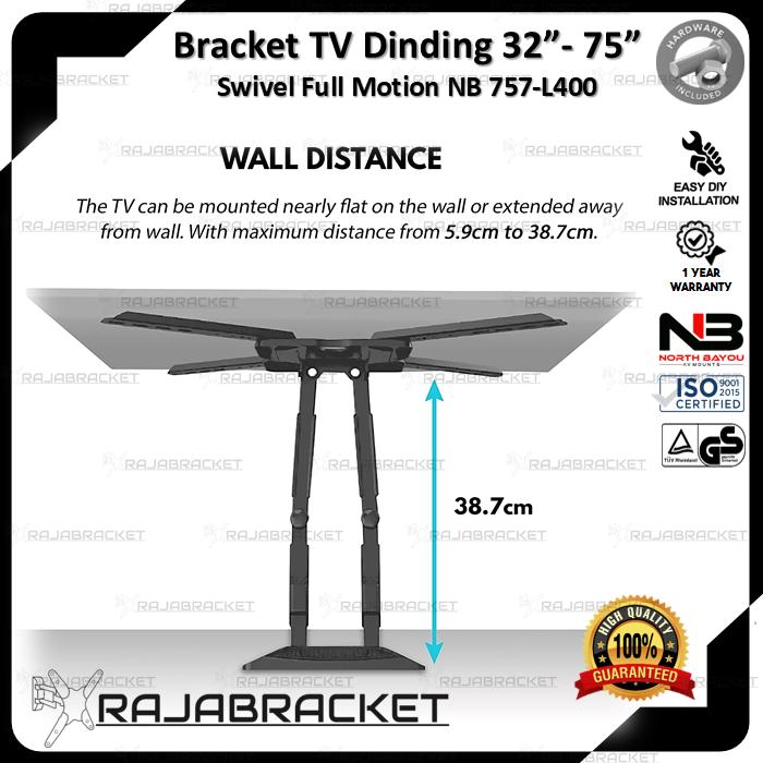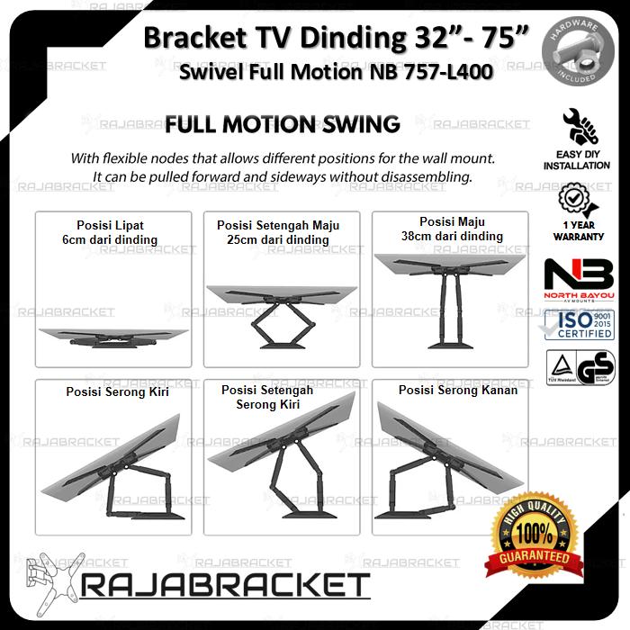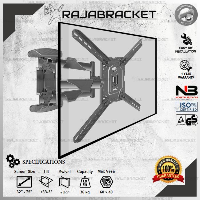 - Swivel: Kemampuan bracket memutar TV horizontal (±80°–90°).