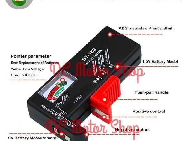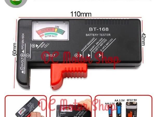 BT-168 Analog Battery Tester – Alat praktis untuk mengukur kapasitas daya baterai 1.5V dan 9V dengan akurasi tinggi. Cocok untuk penggunaan rumah, bengkel, atau industri.