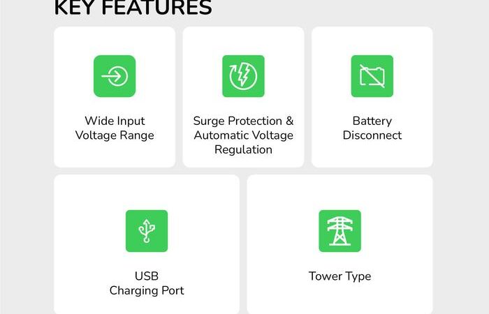 Fitur keamanan canggih seperti notifikasi kegagalan baterai dan outlet yang terlindungi surge memberikan perlindungan ekstra. Port USB terintegrasi memudahkan pengisian daya smartphone dan tablet Anda. Desainnya yang sleek dan compact serta dilengkapi indikator LED membuatnya mudah dipantau dan tidak memakan banyak ruang.