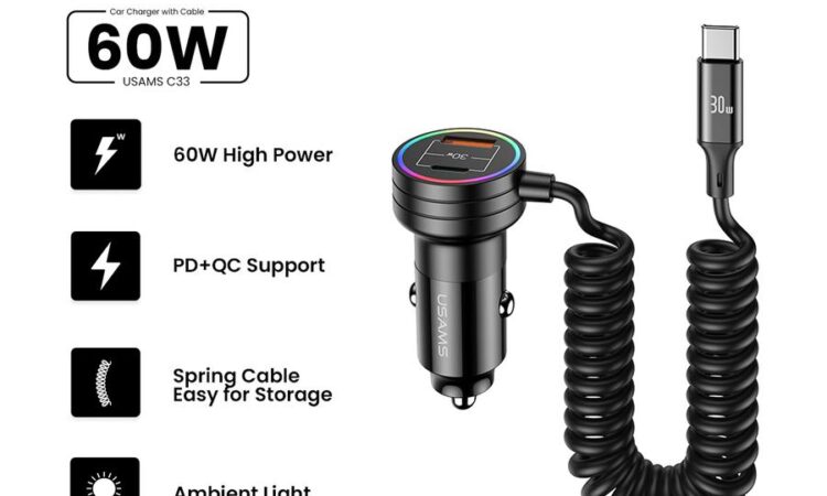2. Daya Tinggi 60W: Charging 3 perangkat sekaligus dengan kombinasi port USB + Type-C + kabel Type-C.