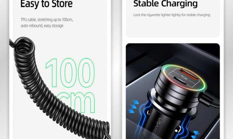 1. Kabel Pegas Fleksibel: Mudah ditarik (100 cm) dan disimpan, anti kusut.