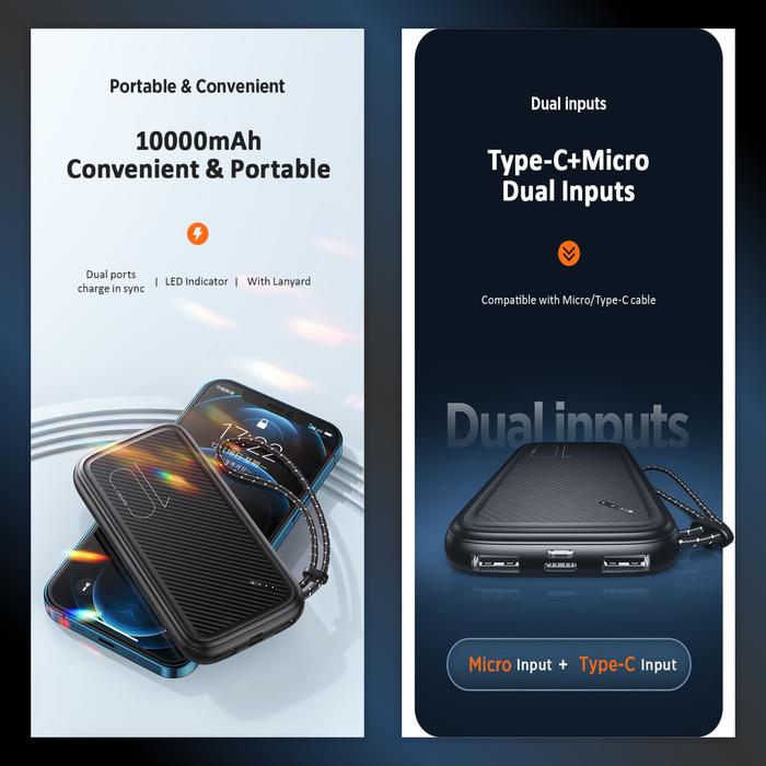 Desainnya slim, ringan, dan dilengkapi dengan gantungan (lanyard) sehingga mudah dibawa atau digantungkan di tas. Tampilan LED yang informatif menunjukkan sisa daya yang tersisa, sehingga Anda tidak akan pernah lagi dikejutkan oleh powerbank yang kehabisan daya di saat penting.