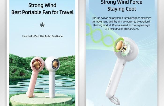 | Fitur | Kait gantung, desain handheld/meja | Desain foldable 105°, aliran angin tinggi |