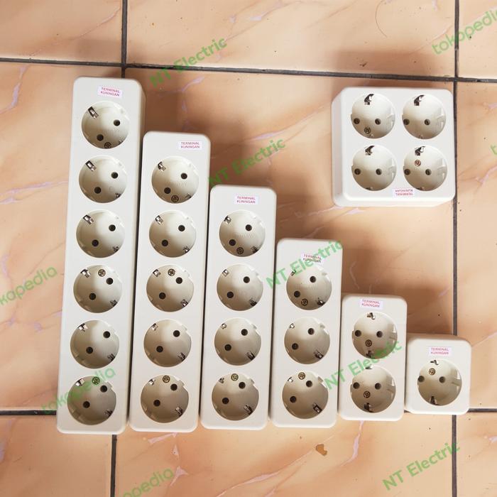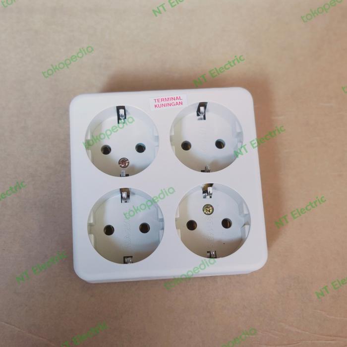 - Terminal Kuningan: Bagian dalam stop kontak tempat pin colokan ditancapkan. Kuningan merupakan konduktor listrik yang sangat baik, lebih tahan karat, dan memiliki daya hantar yang stabil dibanding bahan lainnya.