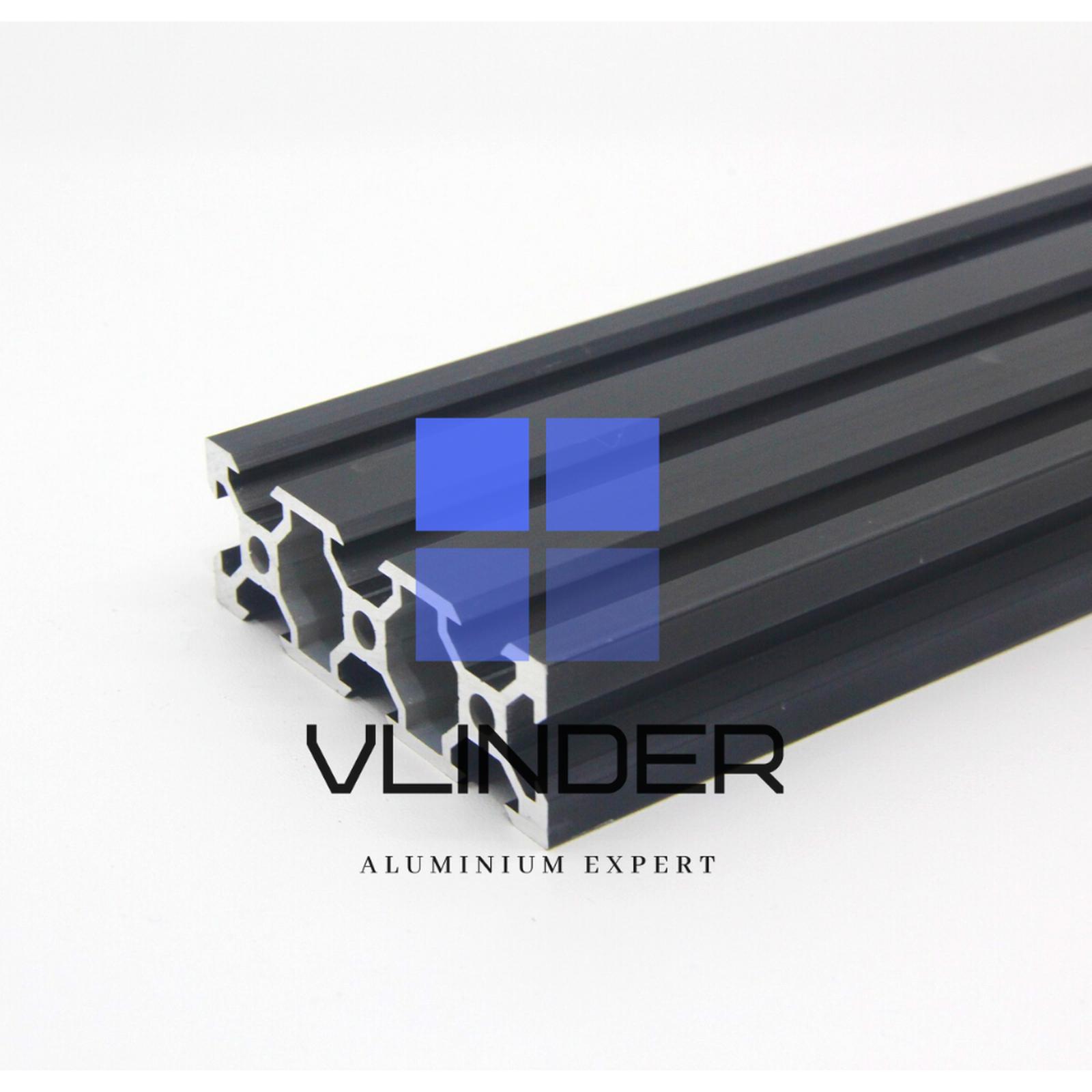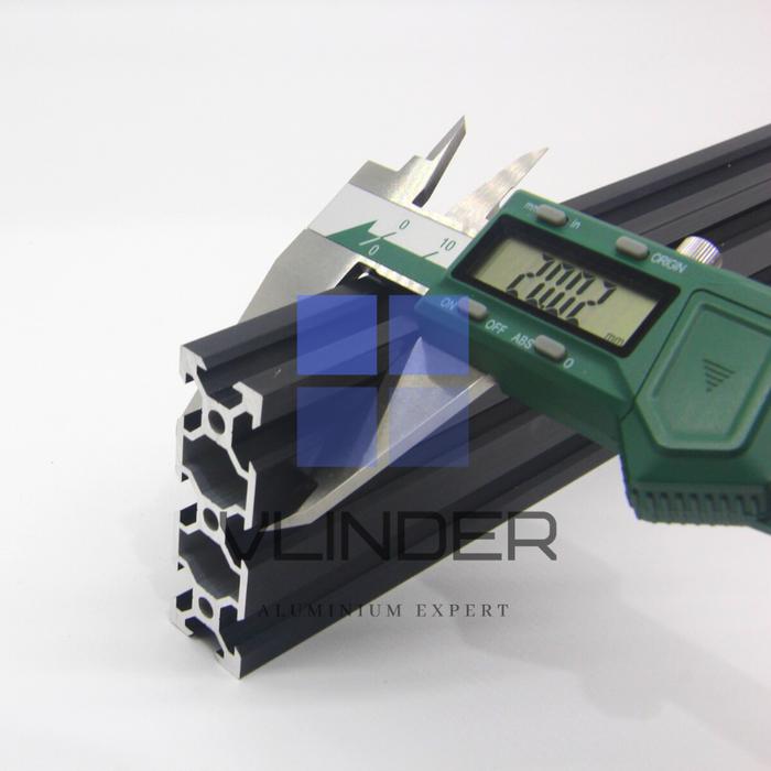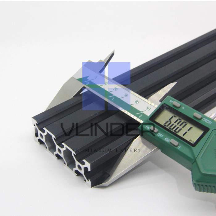| Material | Precision extrusion dari Aluminium Alloy 6063-T5 berkualitas tinggi dengan permukaan anodized Industrial Black minimal 10 mikron untuk ketahanan aus dan korosi. |