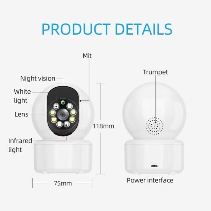 Night Vision CerdasDilengkapi 4 LED infrared dan 4 LED lampu putih untuk rekaman berwarna bahkan di kondisi gelap tanpa cahaya.