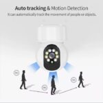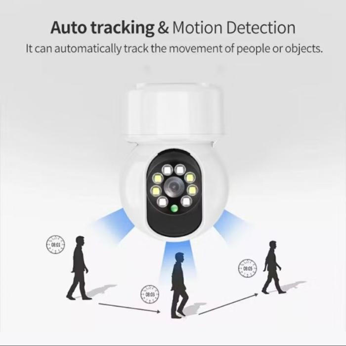 Fitur Keamanan CanggihMotion Tracking (kamera mengikuti objek bergerak), Alarm Sensor Gerak, pemberitahuan ke aplikasi, dan komunikasi dua arah.