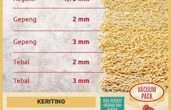 | Isi | 1000 gram (sekitar 12 porsi @83 gram). Mie tanpa bumbu, sehingga Anda dapat berkreasi dengan kuah sendiri. |