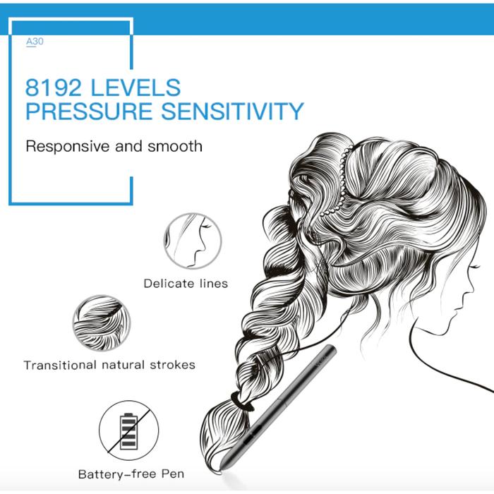 Tingkatkan kreativitas dan produktivitas Anda dengan VEIKK A30, tablet gambar digital berukuran 10 x 6 inci yang dirancang untuk memenuhi kebutuhan profesional dan hobi. Dilengkapi pena canggih tanpa baterai dengan sensitivitas tekanan 8192 level, memberikan pengalaman menggambar yang sangat halus dan responsif seolah-olah menggunakan pena sungguhan.