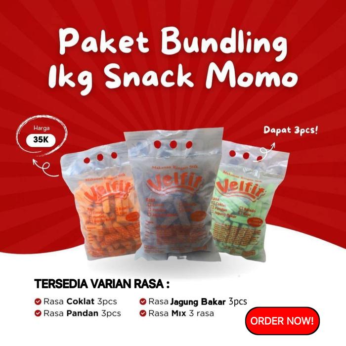 Nikmati kelezatan Snack Momo dengan tiga pilihan rasa dalam satu paket praktis. Sangat cocok untuk hidangan Lebaran, arisan, atau camilan keluarga sehari-hari. Dengan kemasan 1 kg yang berisi tiga karung, produk ini mudah dibagikan dan sudah tersertifikasi SPP-IRT, menjamin keamanan dan kualitasnya.