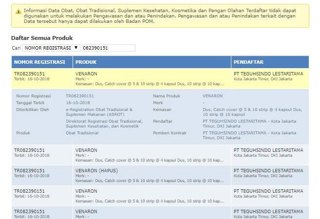 | Nomor BPOM | TR. 082390115 (Terdaftar di Badan Pengawas Obat dan Makanan Republik Indonesia) |