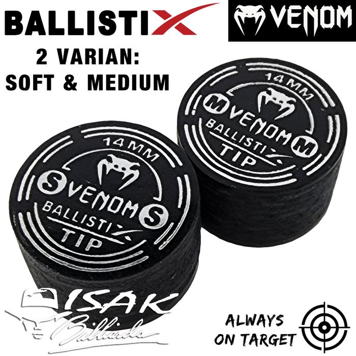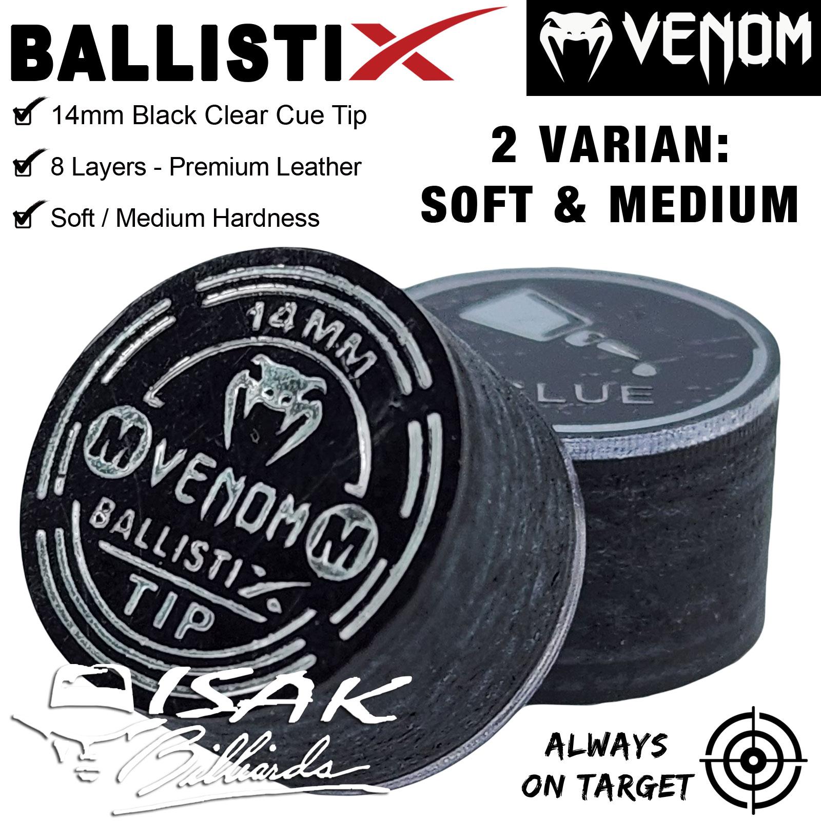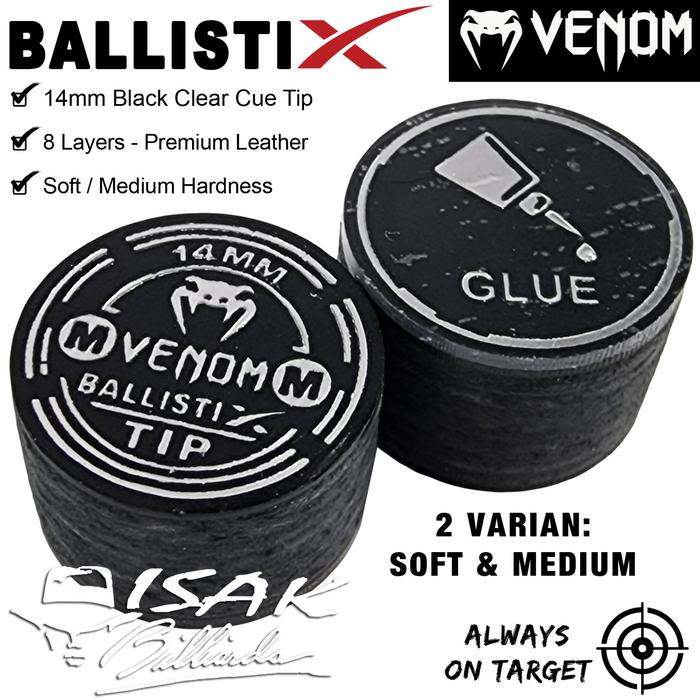 - 1 buah Venom BallistiX Black Clear Cue Tip ukuran 14 mm.