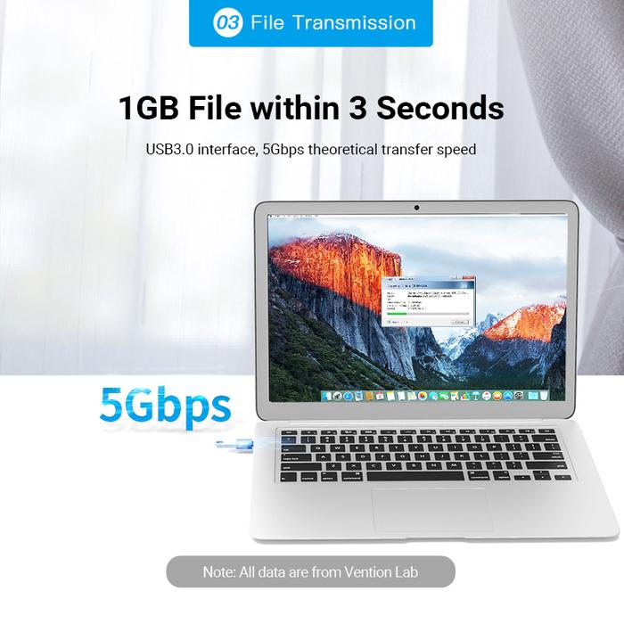 🔹 High-Speed Data Transfer – Dukung kecepatan transmisi hingga 5Gbps dengan USB 3.0, transfer file 1GB hanya dalam 3 detik.