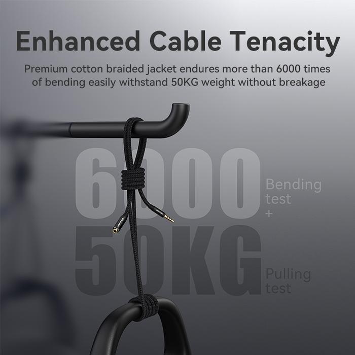 Dibangun dengan material premium, kabel ini menjamin performa audio Hi-Fi yang jernih dan transmisi suara asli yang sempurna tanpa gangguan. Lapisan pelindung braided (anyaman) membuatnya sangat tahan lama terhadap tekukan dan tarikan sehari-hari. Konektor yang dilapisi emas (gold-plated) memastikan transfer sinyal optimal dan tahan terhadap korosi, sementara fitur in-line control dan mikrofon memungkinkan Anda mengatur panggilan dan musik dengan mudah.