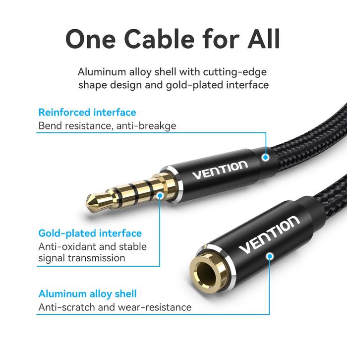 Perluas jangkauan perangkat audio Anda tanpa mengorbankan kualitas suara dengan Kabel Aux Extension Vention. Kabel ini dirancang untuk menghubungkan perangkat dengan port audio 3.5mm, seperti smartphone, headphone, headset, speaker portabel, atau ke sistem audio mobil, memberikan Anda kebebasan dan fleksibilitas bergerak.