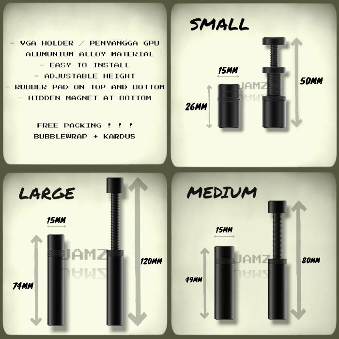 Dukung performa PC Anda dengan VGA Holder premium dari by JAMZ. Dirancang khusus untuk menahan graphic card agar tidak melengkung atau miring, menjaga komponen tetap aman dan tampilan rig lebih rapi.