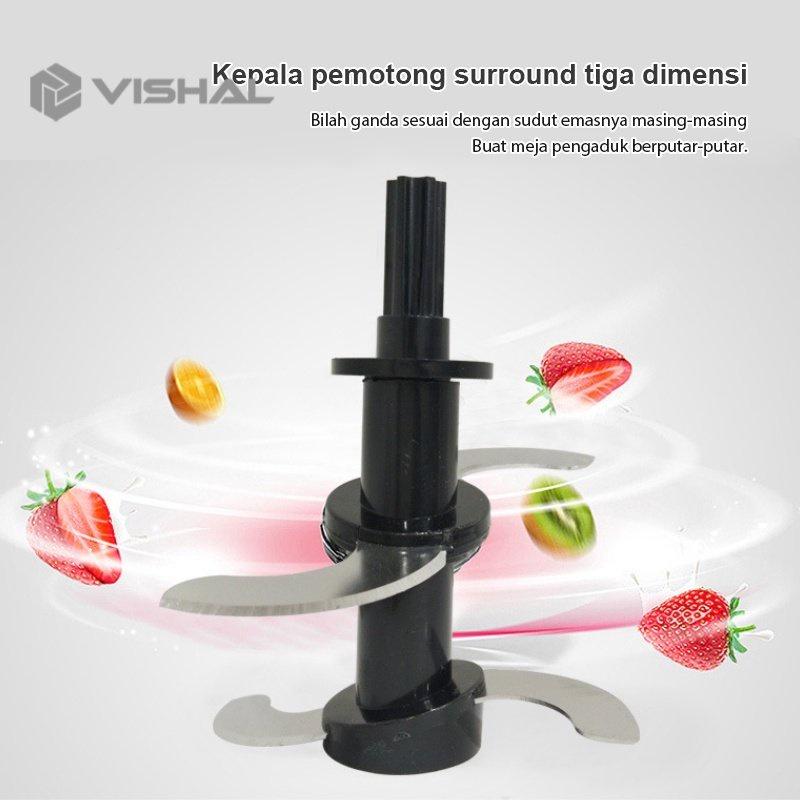 | Cara Penggunaan | 1. Potong bahan padat (daging/buah keras) kecil-kecil. 2. Hindari blending es batu tanpa air. 3. Aduk bahan padat selama proses. |