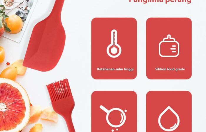 | Isi Kemasan | 1 Spatula Wajan (27 cm), 1 Pengocok Telur (26.5 cm), 1 Spatula Besar (26.5 cm), 1 Spatula Kecil (20 cm), 1 Kuas Silikon (20.5 cm) |