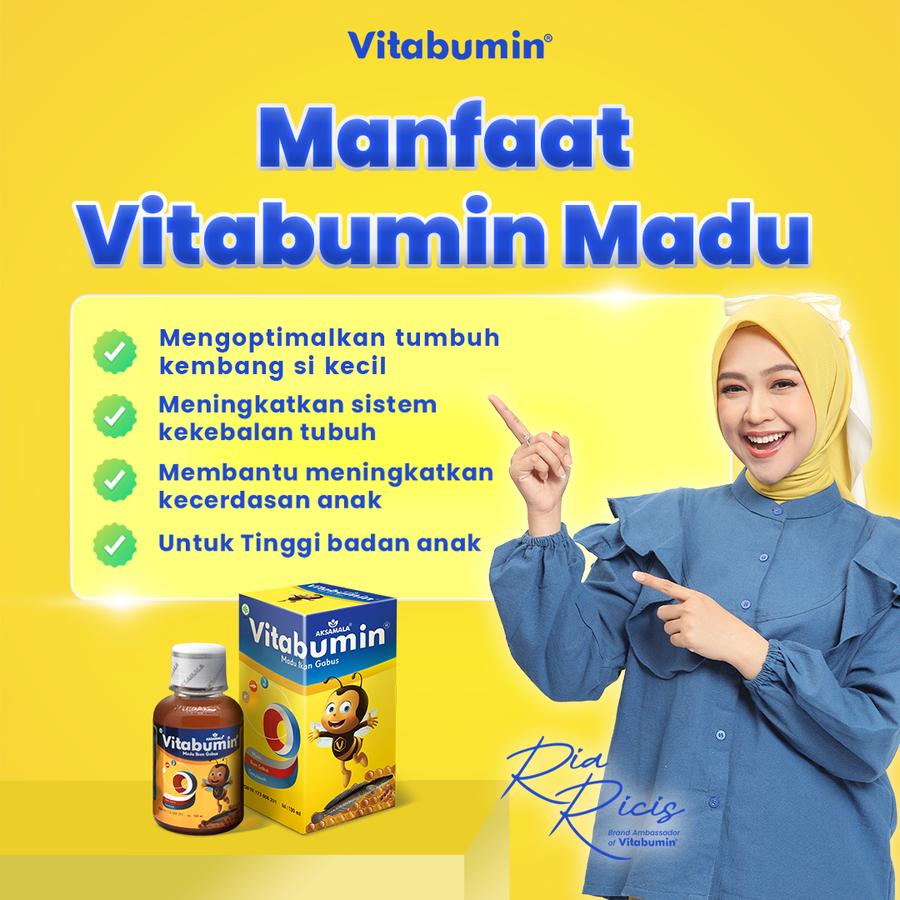 Vitabumin adalah suplemen kesehatan anak yang diformulasikan dari madu murni, ekstrak albumin ikan gabus, dan temulawak. Kombinasi bahan alami ini kaya akan nutrisi esensial yang mendukung pertumbuhan, perkembangan otak, serta daya tahan tubuh anak. Kandungan albumin dari ikan gabus berperan penting dalam membantu penyerapan gizi makanan, sementara temulawak dan madu bekerja sebagai antioksidan alami untuk melindungi anak dari radikal bebas.