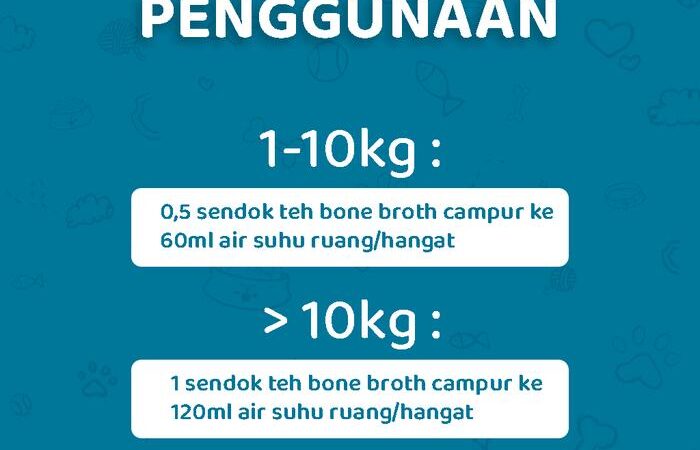 | >10 kg | 1 sdt + 120 ml air | Bisa ditaburkan langsung ke makanan kering/basah sesuai takaran. |