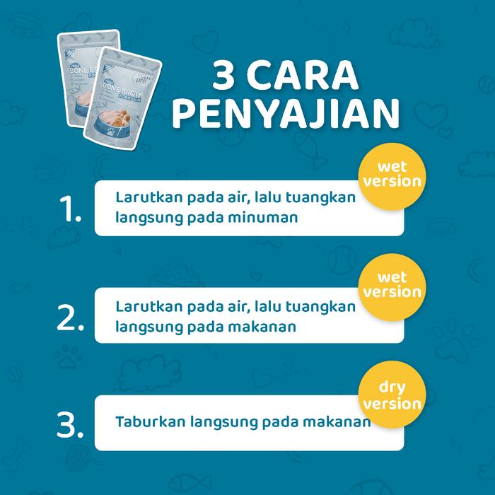 | Bone Broth (Chicken) | 100% ekstrak tulang ayam asli, tanpa bahan pengawet atau perasa buatan. |