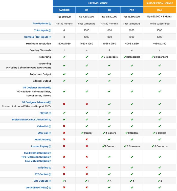 Dapatkan kemudahan produksi siaran TV, webinar, konser online, atau acara live lainnya dengan kualitas profesional. Lisensi key akan dikirimkan via email setelah pemesanan.