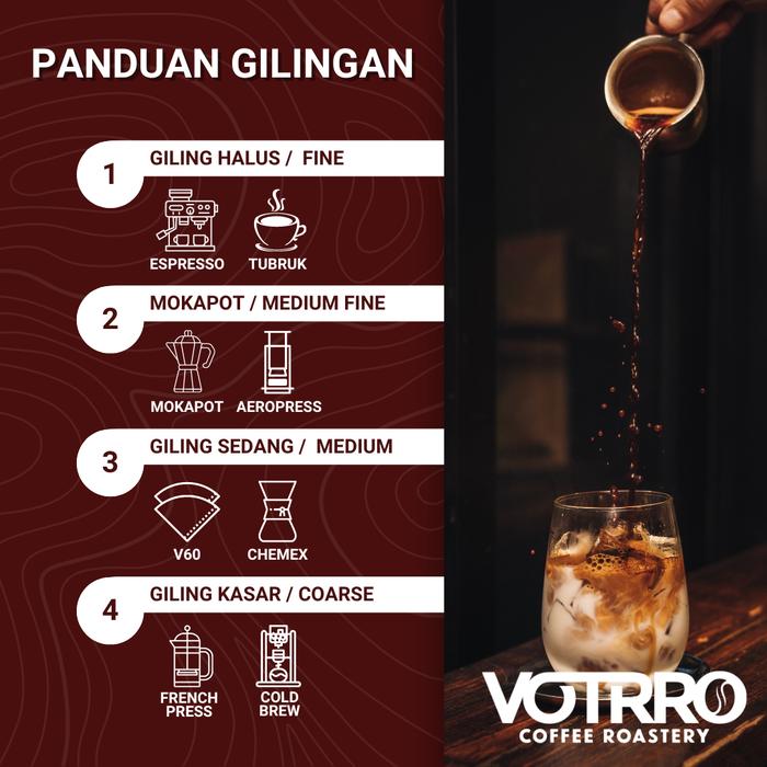 Rasakan keistimewaan kopi espresso premium dengan harga terjangkau. Votrro menghadirkan biji kopi Arabica Mandheling pilihan asal Sumatra, diproses Semi Washed dan di-roast medium dark khusus untuk ekstraksi espresso sempurna. Menghasilkan cita rasa bold dengan karakteristik unik, cocok untuk sajian classic espresso maupun kopi susu kekinian.