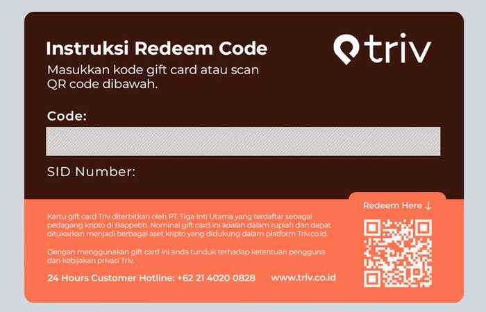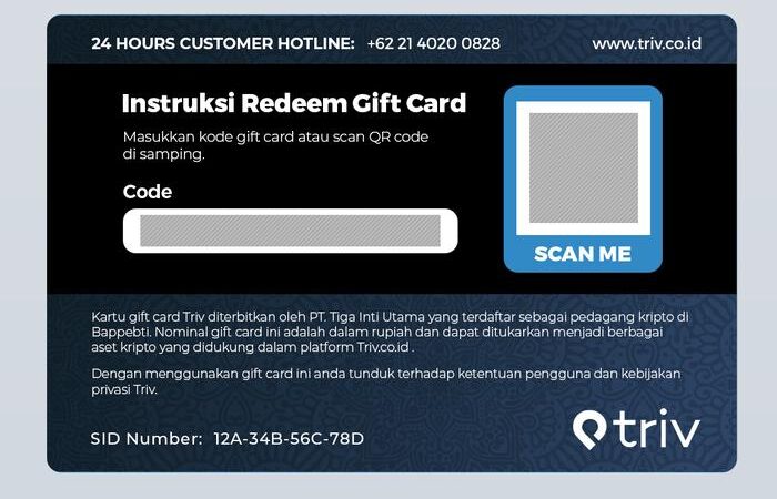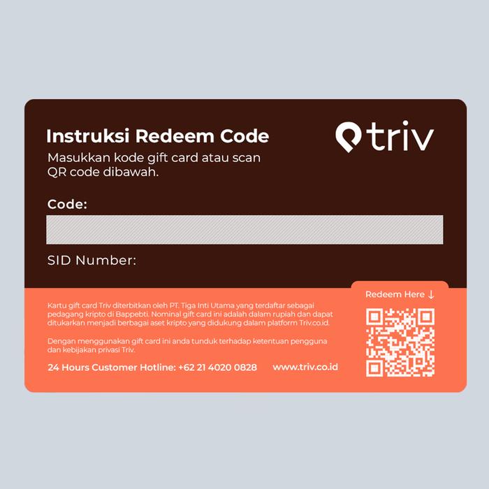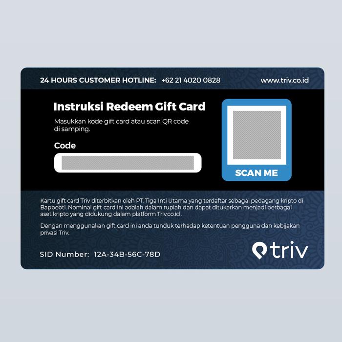 | Cara Penggunaan | Masukkan kode unik yang tertera pada kartu ke dalam aplikasi atau website TRIV. |