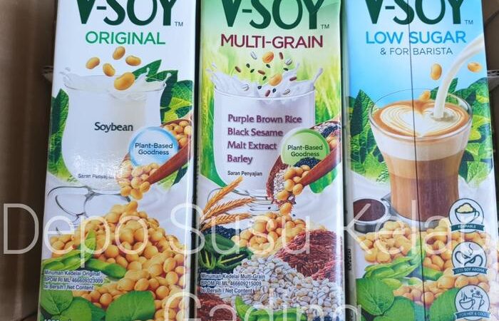 Nikmati manfaat sehat dengan Vsoy Susu Kedelai dalam varian Multi Grain, Original, Low Sugar/For Barista, dan Golden Grain. Dibuat dari bahan alami berkualitas, bebas laktosa, dan kaya protein untuk gaya hidup lebih sehat.