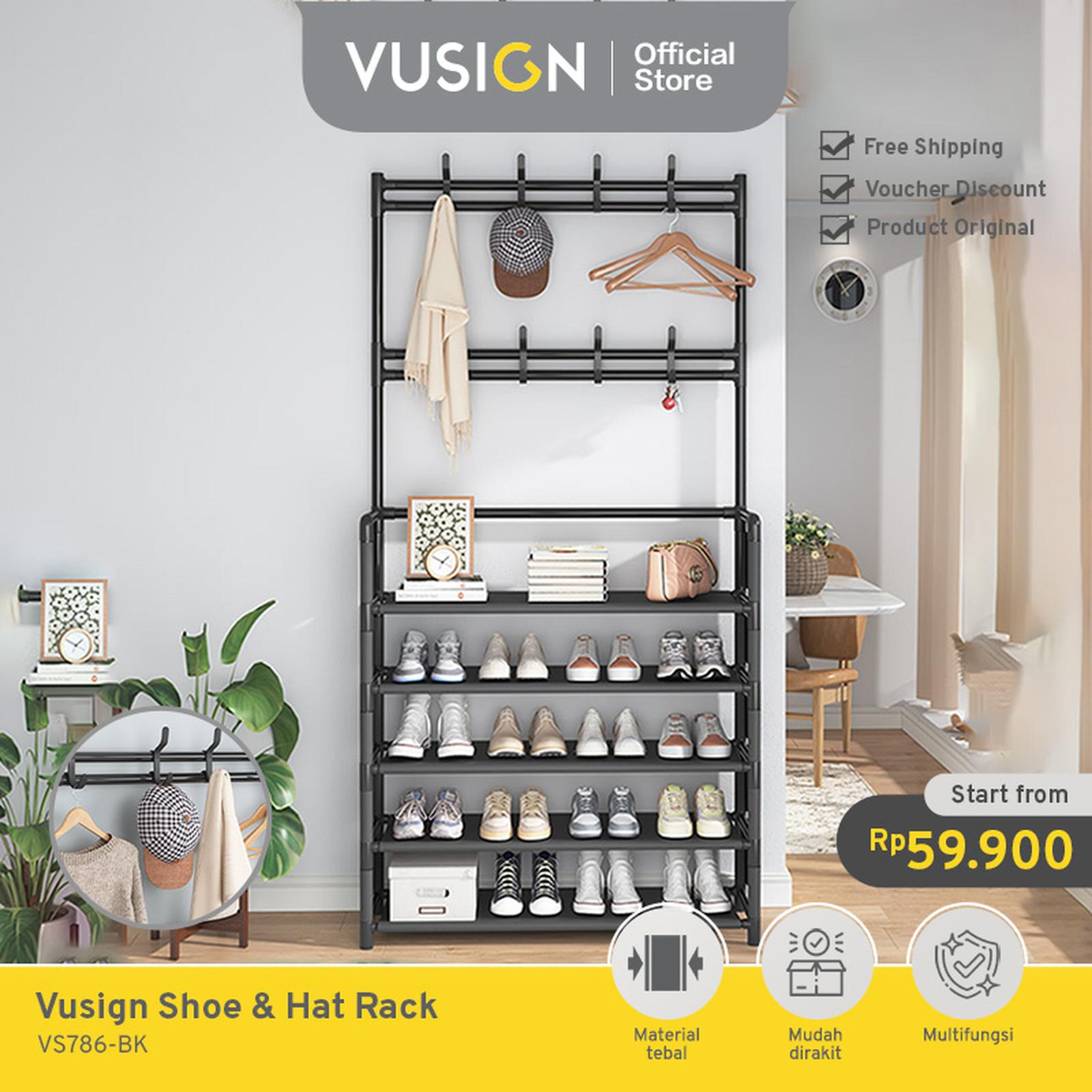 Tingkatkan kerapian rumah Anda dengan solusi penyimpanan serbaguna dan stylish dari Vusign. Rak minimalis VS78X ini dirancang untuk mengorganisir sepatu, topi, tas, dan jaket dengan sangat efisien, menghilangkan kesan berantakan di area pintu masuk atau kamar.