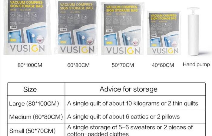 Transformasi cara menyimpan dan bepergian dengan Vusign Vacuum Compression Bag. Kantong vakum ini didesain khusus untuk mengoptimalkan ruang penyimpanan hingga 80%, membuat perjalanan atau merapihkan rumah menjadi lebih efisien. Terbuat dari material plastik PE berkualitas tinggi yang anti air dan transparan, sehingga isi tas tetap terlindungi dari kelembaban, debu, bau, serta serangga, sekaligus mudah teridentifikasi.