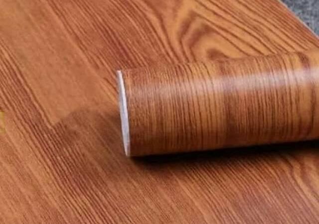 | Sangat Serbaguna – Dapat dipasang pada permukaan lemari, pintu, dinding, hingga bahan kaca dan metalik. | Material: Vinyl bermotif kayu cream |