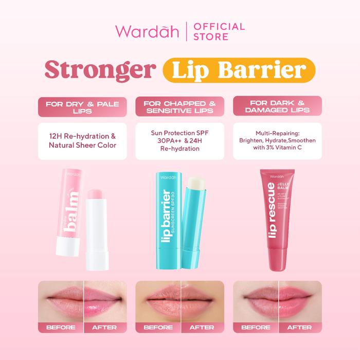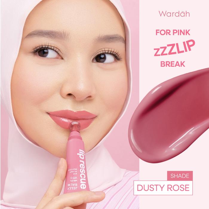 Wardah Lip Rescue Jelly Balm: Multi-repairing balm dengan 3% Vitamin C yang terbukti klinis mencerahkan bibir dalam 14 hari pemakaian rutin. Diperkaya Shea Butter dan Plump OleoactifⓇ untuk hidrasi 10x lebih kuat, menghaluskan, serta menguatkan lip barrier. Memberikan warna pink natural (dusty rose).