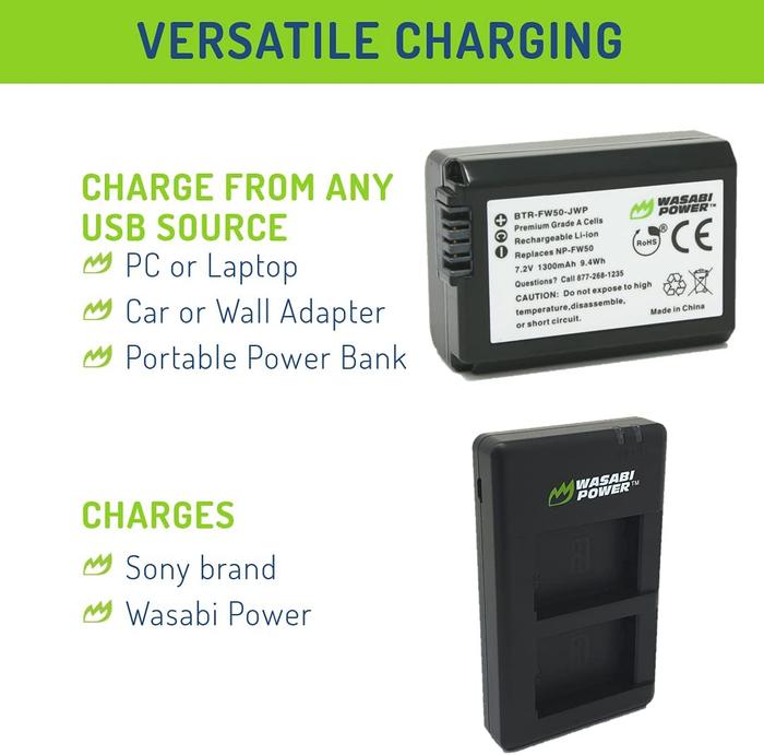 Charger inovatif ini dapat mengisi dua baterai secara bersamaan dari sumber USB mana pun (power bank, laptop, atau adaptor). Dilengkapi fitur perlindungan dari pengisian berlebih (overcharge protection) untuk keamanan maksimal. Kompatibel penuh dengan baterai dan charger original Sony, memenuhi atau bahkan melampaui standar perangkat original.