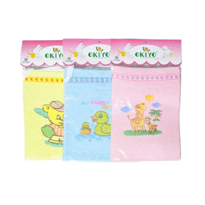 Tingkatkan kualitas perawatan mandi si kecil dengan Waslap Jari dan Kotak dari Okiyo. Koleksi waslap ini dirancang khusus untuk kulit bayi baru lahir yang masih sangat sensitif. Terbuat dari bahan handuk berbahan dasar katun, teksturnya sangat lembut, highly absorbent, dan tidak menyebabkan iritasi atau goresan pada kulit bayi.