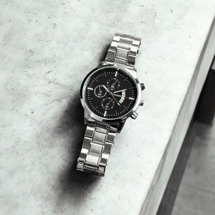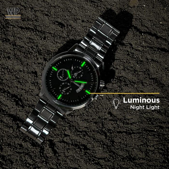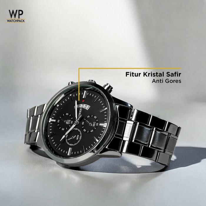 - Desain Klasik & Maskulin: Tampilan chronograph yang sporty dan elegan, cocok untuk acara formal maupun kasual.