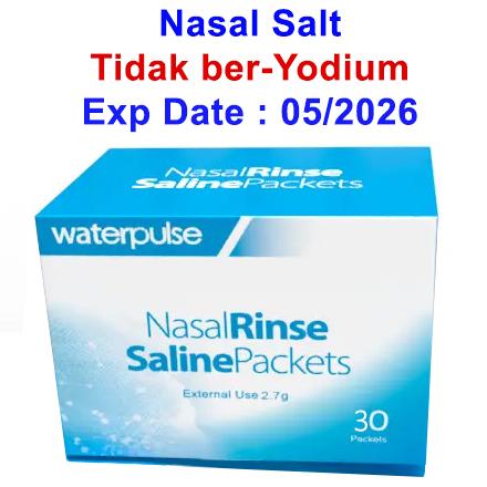 - PENTING: Gunakan hanya garam khusus nasal rinse atau air infus NaCl 0.9%. Jangan gunakan garam dapur.