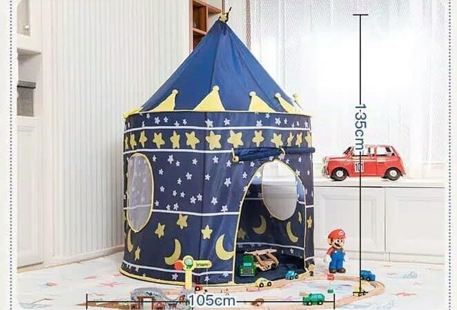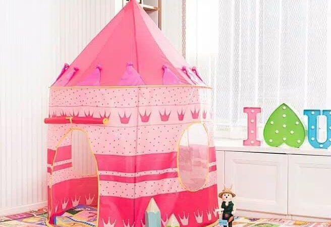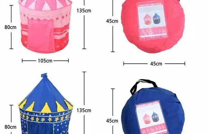 | Fitur | Desain istana/princess, pintu tenda bisa dibuka-tutup, jendela berlubang |