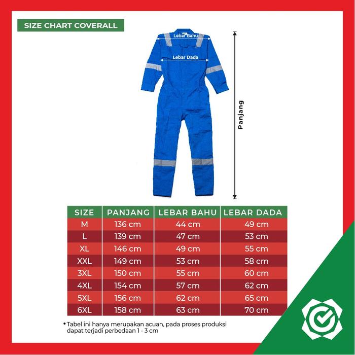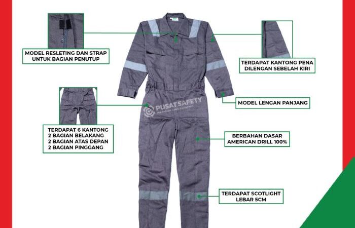 - Coverall / Terusan: Model pakaian kerja one-piece atau terusan yang menutupi seluruh tubuh, biasanya dari leher hingga pergelangan kaki, untuk perlindungan maksimal.